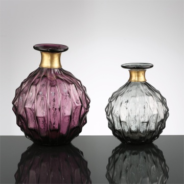 Irregular round shaped glass vase, for centerpieces,glasseam modern gold rim vases for flowers bulk,flower vase aesthetic handmade
