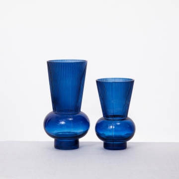 Flower vase for bouquet, modern glass vase, ribbed glass vase for living room, bedroom, dining table, office, wedding