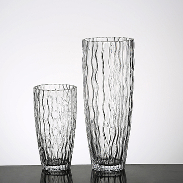 Handmade clear glass vase, with rippling design on body