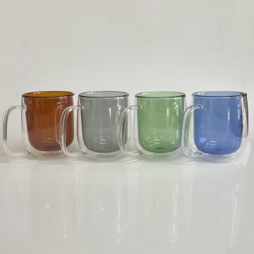 Double wall insulated glass coffee mug with handle, color glass mugs, glass mugs for hot beverages, tea, milk, juice