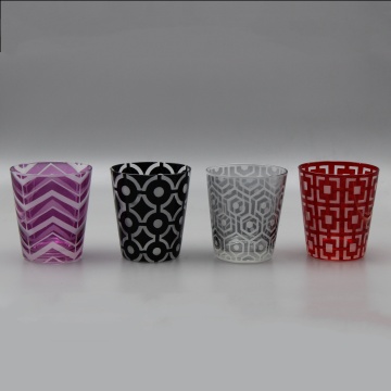 Glass cup with geometric pattern, modern glass cup for serving water, coffee, milk, tea