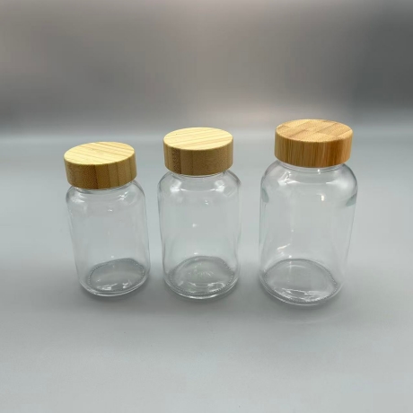 Small clear glass bottles with wooden lid
