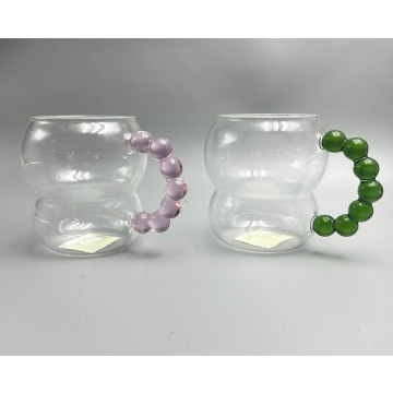 Drinking glass mug with handle, clear attractive glassware for water, juice, milk, coffee, beverages, gift for friends