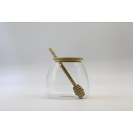 Honey jar set with wooden spoon, glass honey pot container, kitchen countertop storage for honey, syrup, jam