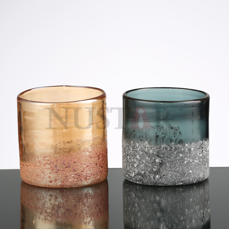 10.5*H10cm Handmade smoke/brown tealight glass candle holder votive with rough and frosted surface,rustic style .