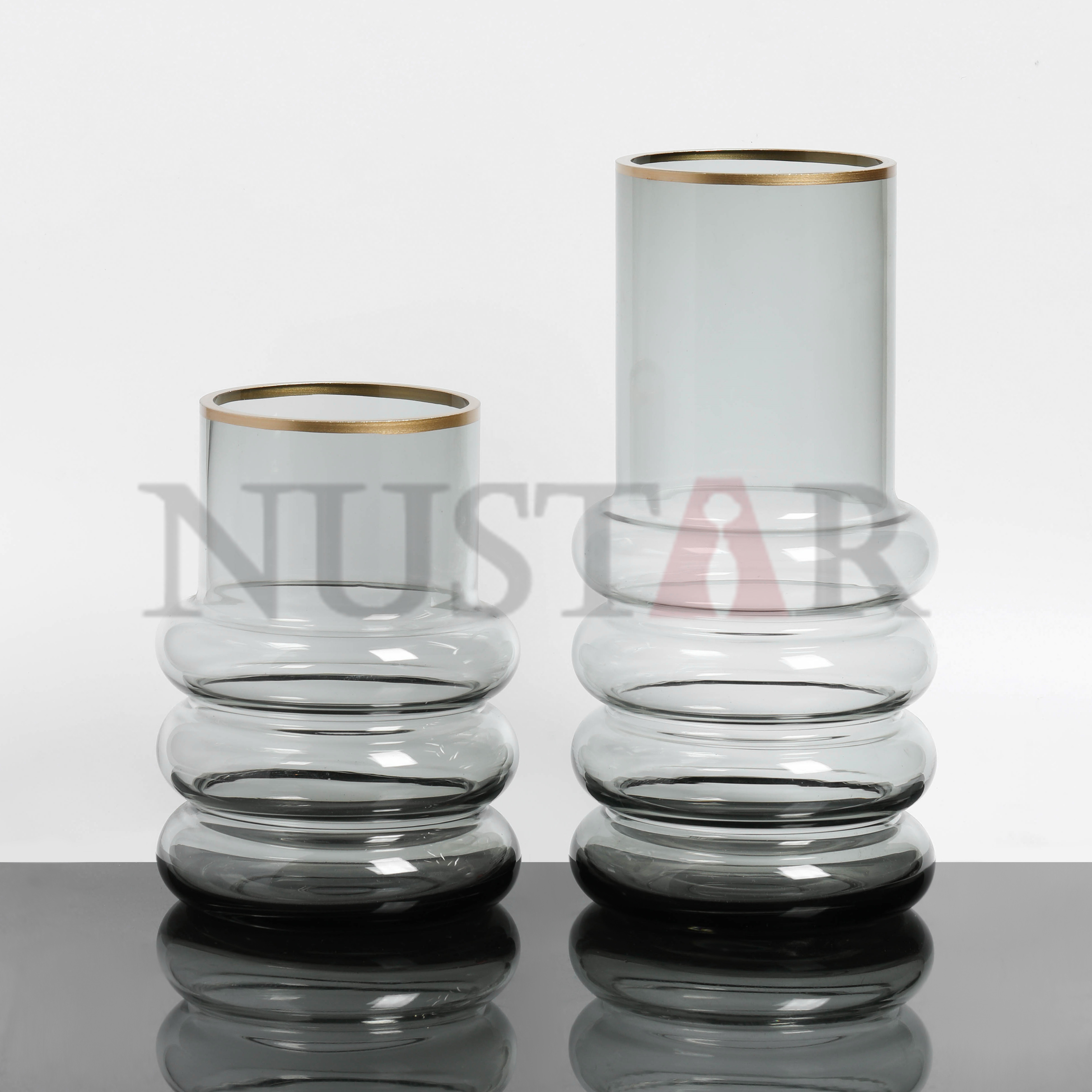 Gray color glass vase with hand painted golden edge