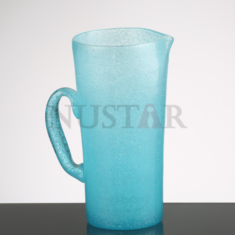 Blue color bubble glass jug/glass pitcher with handle, for milk, water or juice