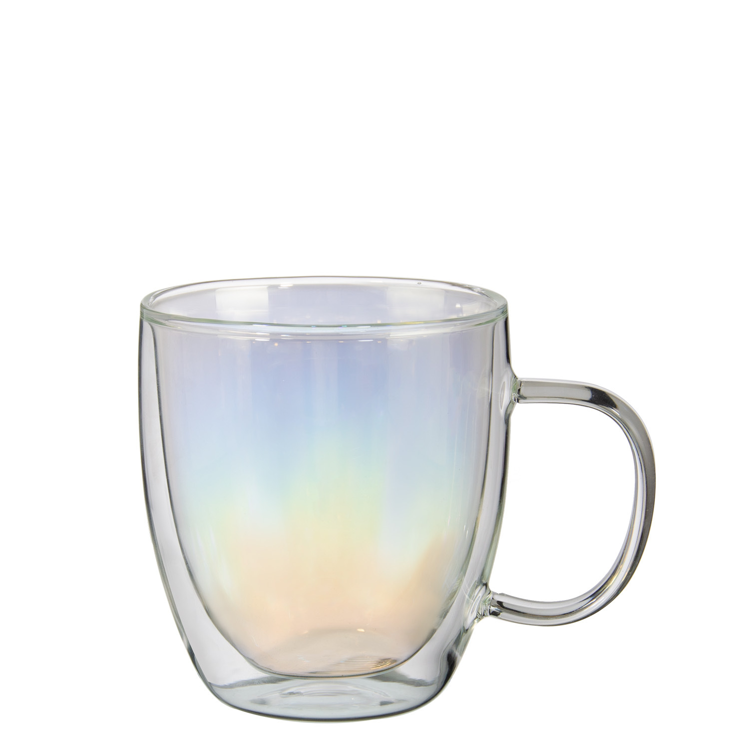Double wall insulated cup with handle, glass coffee mug, clear glass mug for latte, cappuccino, tea, beverages, mlik, ice coffee