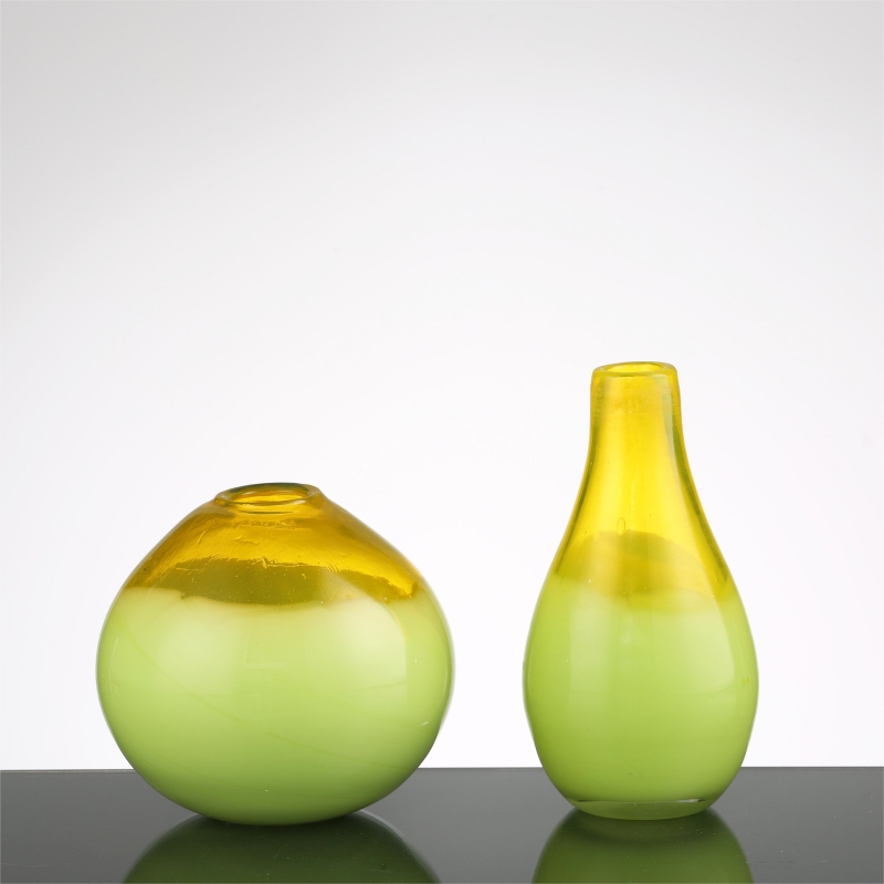 Glass vases for flowers, yellow and green stitching, vintage designed vases for rustic wedding decorations, for home table decor