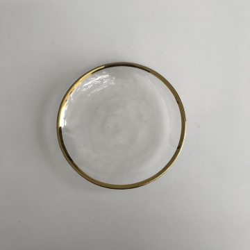 Small glass salad plates with metallic rim, for appetizer, pasta, dessert