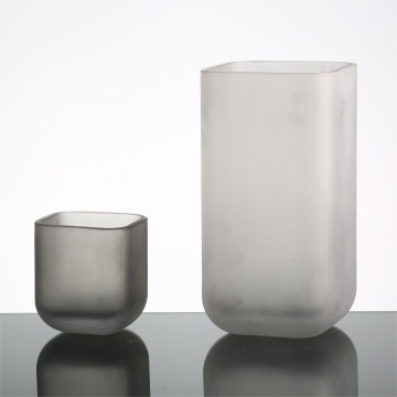 Grey glass vase, hand blown glass vase, square glass vase carved by hand, blown glass vase for home decor office wedding table