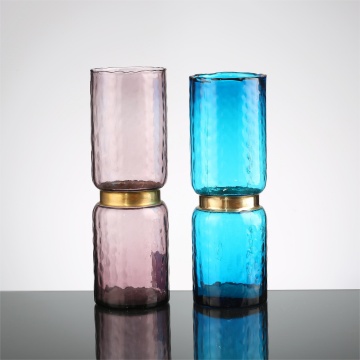 Glass vase, with gold-tone metal in the middle, flower vase decorative for home office table wedding event holiday party celebrate