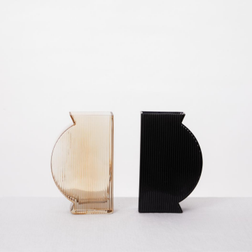 Glass ribbed vase, modern vase for centerpieces, decorative vase for living room, dining table, office wedding decor