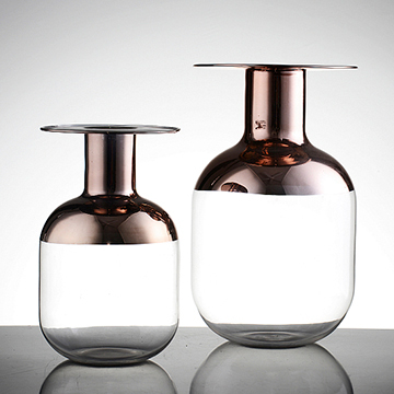 Art glass vase, long neck bottle shaped golden vase, for home or wedding decorations