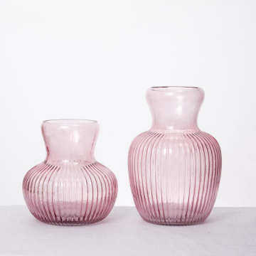 Small glass vases for flowers, pink ribbed mini vase for table centerpieces, vases home decor, housewarming gift