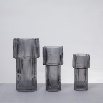 Ribbed glass vase, modern vase with big capacity for living room dining room bedroom