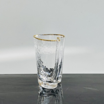 Glass tumbler with gold rim, unique heart shape, for wedding, birthday, christmas, anniversary