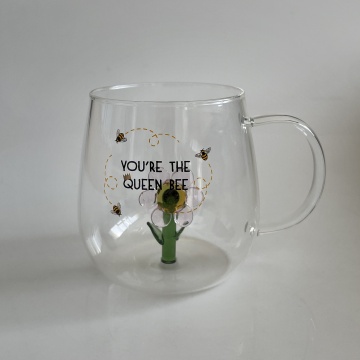 Flower design drinking glasses mug, clear attractive glassware for water, juice, milk, coffee, beverages, gift for friends