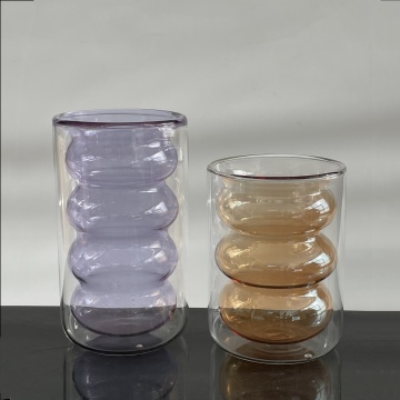 Double-wall ripple glass cup, creative drinking glasses, beverage cups, entertainment drinking glasses for water, juice