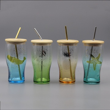 Sippy cups with animal, fruit and other patterns, wooden lids, cold drink glassware