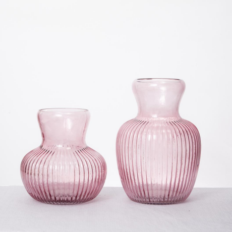 Glass vases for flowers, pink ribbed mini vase for table centerpieces, vases home decor
