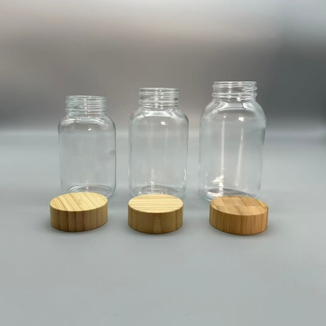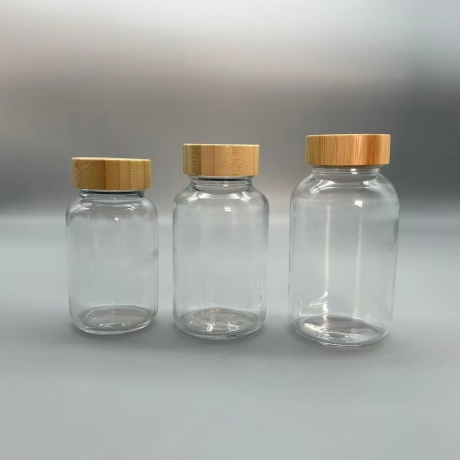 Small clear glass bottles with wooden lid
