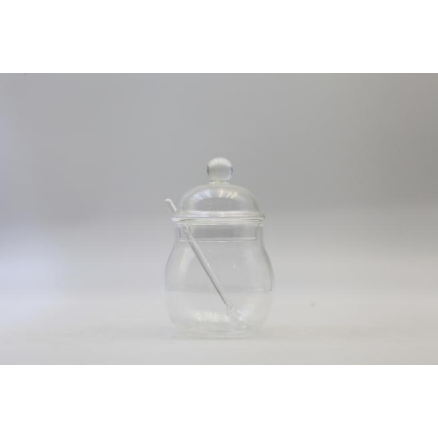 Honey jar with dipper and lid, glass honey pot dispenser with dipper sticks set, honey containers for kitchen, home, syrup storage