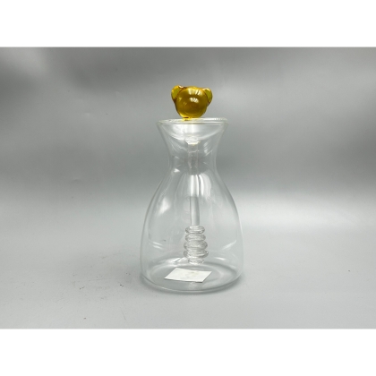 Honey jar with dipper and lid,glass honey pot container dispenser,clear glass honey container for home kitchen