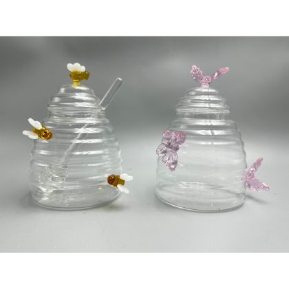 Glass honey jar with dipper, beehive shaped honey pot, honey container with dipper large