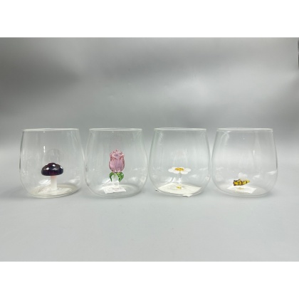 Flower design drinking glass mug, clear attractive glassware for water, juice, milk, coffee, beverages, gift for friends
