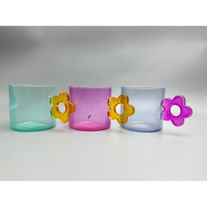 Colored glass cup with flower-shaped handle, modern glass cup for serving water, coffee, milk, tea