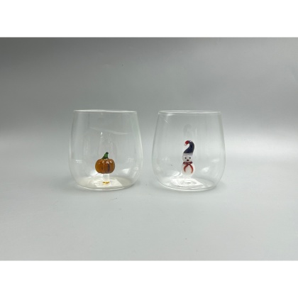 Christmas style glass cups, cute glass tumbler for iced tea, coffee, wine, beverage, juice and water