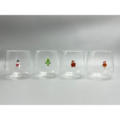 Christmas style glass cups, lovely decoration, clear simple design, for milk, water, juice, beverage, coffee, tea