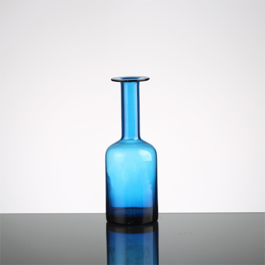 Long-necked glass vase, blue art glass flower vase, decorative glass bottles flower with vase for dining table home wedding event