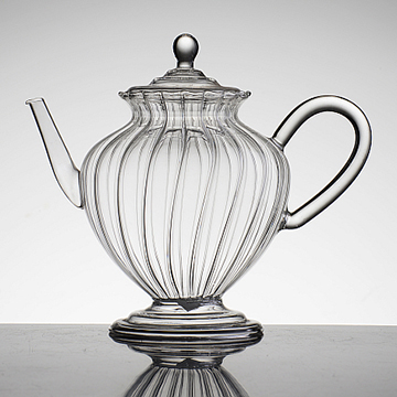 Borosilicate glass teapot with ribbed line, for blooming flower tea
