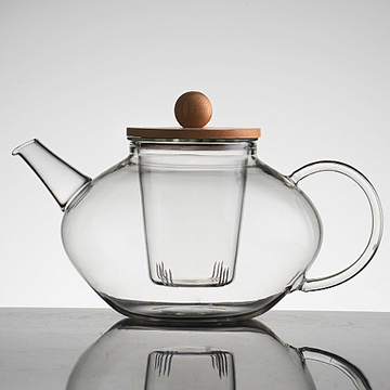 Glass teapot with removable infuser for loose tea blooming tea, 1200ml heat resistant glass teapot with wooden lid, tea maker gift