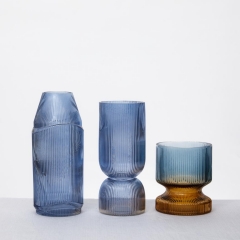 Large blue vase for flowers, thick decorative glass vase for table centerpiece