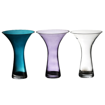 Hand-blown glass trumpet vase with flare open, in different colors