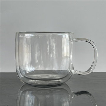 Double wall insulated glass coffee mugs with handle, clear glass mugs, glass mugs for hot beverages, milk, juice