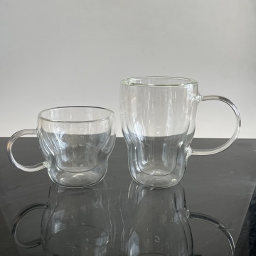 Double wall insulated glass coffee mugs with handle, clear glass mugs, glass mugs for beverages, tea, milk, juice
