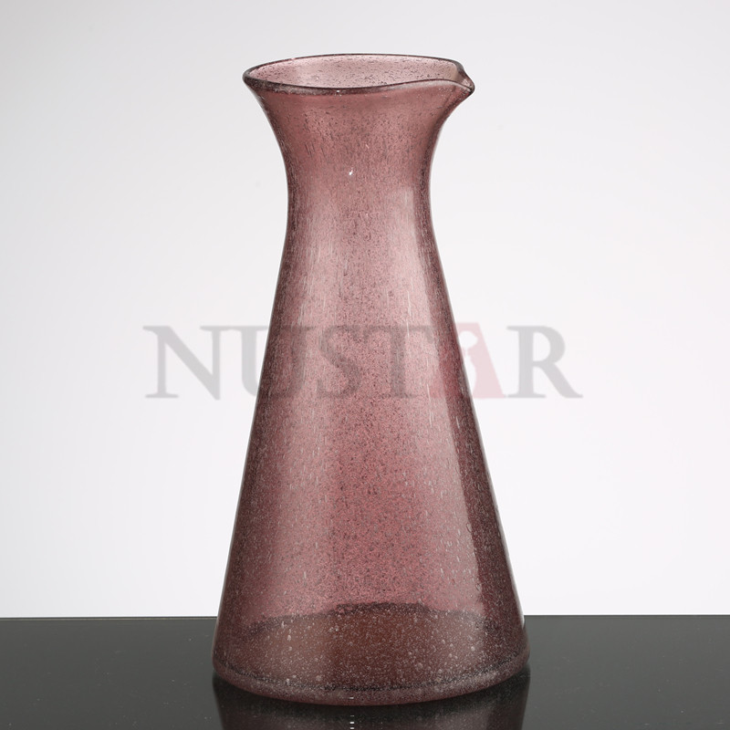 Purple color glass pitcher for milk, water, juice or wine,with bubbles decoration in glass .